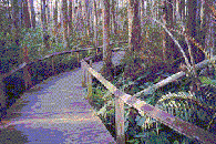 The silent coolness of the fern and moss-covered wetland beckon the entertainment-overloaded, hot Florida visitors to peace and quiet contemplation. The tall cypress trees, surrounded by their nutrient-supplying knees, form a leafy canopy of green strung with gray Spanish moss against the blue sky. Other plant species offer seasonal variations of bloom and leaf throughout the mile long boardwalk. The observant and respectful visitor may glimpse native bird and animal inhabitants in daily life routines in this their natural habitat.