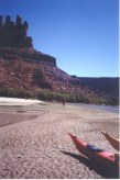 around the sandbars and narrow channels. I found my rhythm and felt I could do shallow, light strokes for as far as the river would take me. Tomorrow the rest of the group would do a quick change into mountain biking gear at Mineral Bottom. They were heading for the famous White Rim Trail. The abandoned mining roads carved into the cliffs during the uranium boom are a magnet for bikers around the world. I was to return to Moab on the support van with the kayaks. After exchanging travel tales around the campfire we said our goodbyes and then I drifted to a dreamless sleep feeling river wise.