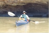 The Green is, in fact, ruddy colored from sediment run-off. The murky water did not entice me to swim even though it was a pleasant 67 degrees. The current was strong solid and swift in this so-called lazy river. Paddling a kayak for fifty miles on flat water appealed to me. I envisioned an effortless glide through Labyrinth Canyon with plenty of time for rubber necking and a chance to hone my river skills. It was the end of the driest summer in the history of Utah. The volume of the river was low; 1700 cubic feet per second as opposed to the normal 8,000 cubic feet per second. A kayak is a good choice for this river because it is more maneuverable and easier to lift off of a sandbar than cumbersome rubber raft. It’s also the best river for a novice to learn how to kayak.