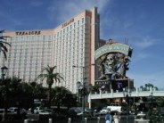 Mirage has a volcano fountain which erupts with fire at regular intervals in the evening. You’ll also want your whole family to see the beautiful aquarium and botanical gardens with fountains and orchids. Mirage is also famous for its Dolphin experience and as the home of Siegfried & Roy’s famous white tigers. Even if you’ve seen Siegfried and Roy on TV and think their illusions are just the magic of trick photography, you HAVE to see the show! We had front row seats and watched their amazing illusions right in front of us and are still in awe. Absolutely impossible, yet we saw Roy cut in half, with nowhere for “extras” to hide, no way it could be tricks of lighting, and we’re still shaking our heads in amazement!