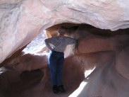 Don’t cheat yourself by just driving through this amazing desert/mountain landscape. Get out of your car and take a hike. Be sure to take water and sun protection for skin and eyes… you are in a desert! There are many marked trails to interesting places, and these hikes are under a mile and a half. When you walk amidst the giant, red sculptures your imagination will see monsters, elephants, fish, dinosaurs, lizards, skeletons, skulls. It’s fun to decide what Nature’s Sculptor is whimsically depicting. The wonderful “hidey holes” are fun to crawl into to take photos, or to throw down a sleeping bag and curl up for a marvelous night beneath billions of stars winking at you through the crisp and chilly desertnight air. You’ll see the Milky Way clearly and more stars than you ever knew existed…and maybe even E.T.!