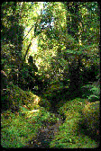 Spreading fronds of giant tree ferns, and thick layers of moss, lichens and epiphytic vines converge to create a symphony in the key of green. Birds like the tomtits, robins, the tiny rifleman and the flashy fantail twitter from the depths of the cool forest. The friendly gossip of the energetic Hukere Stream churning over black boulders kept us company all along the challenging climb to its headwaters.