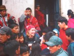 The children escorted us to a small church with townspeople spilling out of the entrance. Streams of toilet paper decorated the ceiling, swooping across, making arches in cutout patterns. The ceremony was in Quechua, and everybody involved in the couple’s life had a role in the ceremony, speaking or singing, giving advice and suggestions. A community of people invested in the happiness of the young couple. Colombe was resolved to support the couple in their life and commitment together. Choirs of children sang and ran in and out of the church, excited about their role in such a significant event.