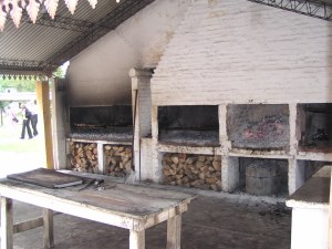The Chinas (ranch women) welcomed us upon arrival at the Pub, where gauchos meet with friends at night to sing and dance. We enjoyed tasty snacks from baskets of the local favorite: empanadas, delicious mixtures of grilled meat and vegetables wrapped in pastry and fried. These were so tasty with beer, wine, soft drinks. We wandered around the peaceful, pastoral greens. Behind the pub we saw our lunch sizzling on the grills and spits in the parilla house, where food is prepared in a tiered open-air grill under a thatch roof.