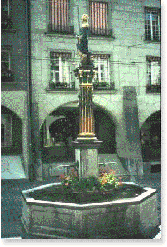 The Justice Statue, designated the “artistic masterpiece” of fountains, was built in 1543. The woman figure, blindfolded and dressed in ornamental armor, holds a sword and balance. The sculptor, Hans Gieng, put representatives of power at her feet — a crowned emperor, the pope, a sultan and the mayor of Bern. Justice, a symbol of the Republic, calls them to account to carry out justice. Nice philosophy.