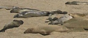 The view before us looked like a giant deli tray filled with huge bratwurst all lined up in a row. A local docent was in the midst of the group and busily answering the questions of our fellow on-lookers. Quickly we learned that what we were viewing was in excess of 200 molting sub-adult male Northern Elephant Seals.