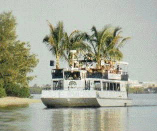 Two full bars and a light-fare menu are available on all cruises, Reservations are recommended. Call ahead for departure schedule Look for the big yellow boat with the palm trees on top