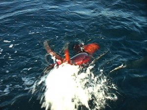 While fighting a squid estimated at about fifty pounds, she experienced the