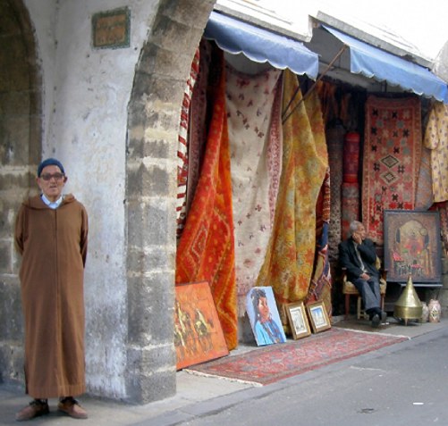 Goats herders were on the steep slopes below. Wide, tree-lined boulevards led to narrow streets and the old Berber village souk (market) – a sensory delight — spices, vegetables, clothing, pottery, leather goods, jewelry, metalware, and more — and a display of meats, animal heads and hooves that elicited gasps from unsuspecting tourists! We sat with a merchant clad in a traditional jellaba, the hooded garment with wide sleeves, sampling sweet mint tea as he described spices in a relaxed and welcoming atmosphere….
