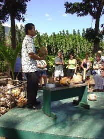 We explored the gorgeous Iao Valley at leisure, only three miles from the Wailuku highway. A stream bubbles down from the Iao Needle, 2,250 feet high (1800’ above the valley floor). It flows under a walk-over bridge and through the botanical garden. Climb a path of 132 steps for the view, maybe take another path that leads to the swimming hole in the stream. This green valley filled with fern, philodendron and a forest of trees was a sacred spot to Hawaiians and historically important. Here, in 1790. Kamahameha I landed along Kahului Bay with a large fleet of canoes. In the Iao Valley, he fought the ruling chief’s son who was in charge at the time. This battle, says the commemorative sign, is said to be one of the most bitter ever fought on Hawaiian soil. As you look out over the valley, you can almost hear, as the marker says, the warriors’ shouts of defiance.