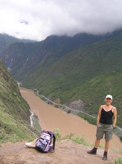 I flew the quick hour to LiJiang which is supposed to be a typical old village. It was more like a Disney World look alike of an old village. It was jam packed with tourists (mostly Chinese) and every shop was a souvenir shop selling jewelry, clothes, leather, wooden products (like toy guns), teas and lots of weird dried stuff I can’t possibly identify. I met a Finnish girl and we booked in the youth hostel which at first appeared quite quaint, but turned out to be a real dump (note to self: find out when exactly the hot water works when staying at cheap accommodation in China). We then ran around trying to get info on the Tiger Leaping Gorge which is the thing to do here. We just could not find anyone who spoke English and could not find maps or anything! We ended up booking a bus ticket to the place. Well, it happened to be monsoon season and I mean it was pouring! I regretted having cut up and given away all my warm clothes in a heat induced delusional state back in Yangshuo.