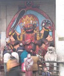 Just then Dennis walked up to us. “You are all lucky,” he said. “’The Living Goddess is scheduled to come out on her balcony today. I believe in about ten minutes. You know, we westerners may think this ritual is bizarre, but virgin worship dates back to the 6th Century B.C. and is a very real part of Nepalese life. The sick worship her in the hopes she will cure them of their illness, politicians make offerings at her feet, believing it will help their careers, and each September the king worships her in a ceremony where he touches her crimson-painted toenails with his forehead, and presents her with a gold coin.