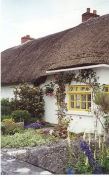 Far west at Glencolumbcille, we stopped for tea at the Heritage Center, where we found thatched roofed cottages built and furnished in the way that inhabitants of the region would have lived in the 18th and 19th centuries. The smell of peat burning in the fireplaces gives a cozy, inviting feeling to the cottages, which offer the visitor shelter from the wind coming in from the sea.