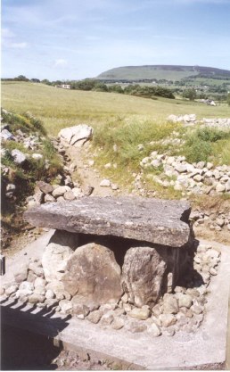 Carrowmore Megalithic Cemetery, with over 60 stone circles and passage graves, is one of the largest Stone Age cemeteries in Europe. From the adjacent Information Center excellent guides take groups of visitors to various grave sites, or dolmens. Many of the dolmens are still capped by three massive stone slabs with a fourth set on top resembling a large stone stool. We were cast into ancient mythology as we viewed across the misty countryside to the mountains that surround Sligo. The dominant mountain is Knocknarea with the cairn or tomb at its top, the burial place of Queen Maeve. An estimated 40,000 tons of stone were carried to the top of Knocknarea during ancient times to form a pyramid mound, a huge cairn which has never been excavated. We spent the afternoon climbing to the top for a wonderful view. If you climb Knocknarea, you are suppose to carry a rock to place on Maeve’s tomb for good luck, which we certainly did. You can not escape the feeling that you’re in the presence of the ancient celtic spirits.