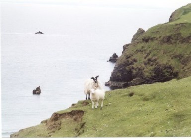 Entering again the Republic of Ireland in the far northwest and most remote region, we proceeded to Ballyshannon on the coast and turned north on the N15 to Donegal. The region is marked with thatched roofed cottages, rolling green hillsides dotted with sheep, and spectacular cliffs jutting up from the sea. The town of Donegal is built on the River Eske with the 15th century Donegal Castle set at a bend in the river in the center of town. Donegal is famous for its woolen Donegal tweeds. All along the roads are shops selling and displaying every kind of woolen wear from sweaters and hats to bolts of fabric and bundles of yarn. But most impressive to the region is a drive along the cliffs bordering the sea on the road to the fishing village of Killybegs and beyond. At the village of Carrick we found the Slieve League. These are cliffs which drop 300 meters straight to the sea. The face of the cliffs can be seen from a boat to change colors, as if by magic. This is a wonderful place for a picnic with extra time just to absorb the ambience.
