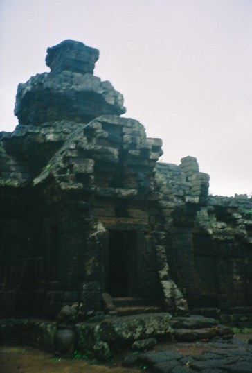 before the Khmers changed to Buddhism. Beneath the pedestal, the earth was marked by a gaping hole where treasure seekers had defiled the temple.