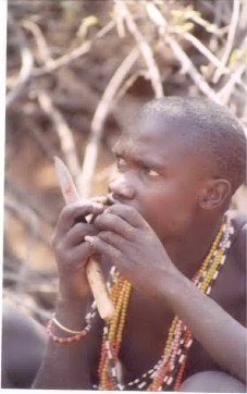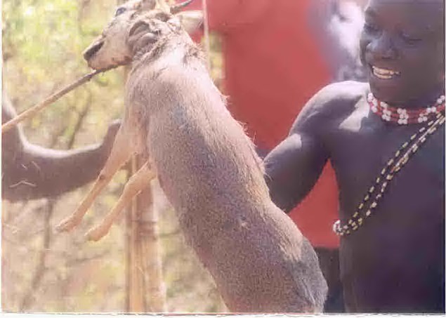 A fire was started and the Dik-Dik was placed on it. The fur had to be burned off before there could be a meal. The small game animal was gutted and nothing went to waste. What they did not eat, including the brain, their dog ate. Their food is not cooked. It is eaten raw and bloody. I was asked if I wanted to try some and I agreed if they would cook my portion somewhat. Dik-Dik, to me, taste like liver which is not my favorite.