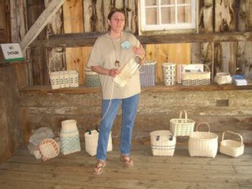 We enjoyed seeing basket-making by some of the best basket-makers at the Calvin Coolidge birthplace, where Irene Ames demonstrated weaving traditional designs from split black ash, making the process look so easy! She explained the different traditional uses for various sizes and shapes of baskets, including the feather basket, a half-peck, and a peck. She creates her baskets with a unique star pattern woven into the center bottom of each, even in her tiniest doll-house baskets.
