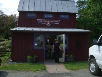 Visual artists abound in Vermont, and galleries and shops feature numerous local works for display and for sale. We were fortunate to have one of the local artists leading our arts tour, Annette Compton, whose media and styles are varied and she teaches art locally. She is illustrator and artist of two books, God’s Paintbrush and Drawing From Your Minid, Painting From Your Heart. Her paintings are frequently on display for sale in many galleries including the popular Mountain Creamery Restaurant in Woodstock, where you’ll devour the most delicious burgers from the owner’s own cattle and the most incredible churned ice cream you ever tasted. Be sure to try the maple vanilla flavor from local sugar maple trees. Annette led us to many galleries, of which perhaps the most novel location was Pegasus Gallery, which is in a quaint building beside a Mobil Gas Station near White River Junction… a perfect rest stop to shop for your special Vermont artworks. Owner Sheryl Trainor features many different artists in her regular gallery shows.