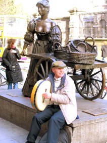 From there we went to Grafton Street, an older shopping street, and then into a larger grander shopping mall (it would fit into a corner of an American one), with ornate ironwork. It took up the corner of Nassau Street and Grafton Street. Outside was an Irish drum player, sitting on the plinth of a bronze statue of Molly Malone.