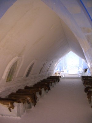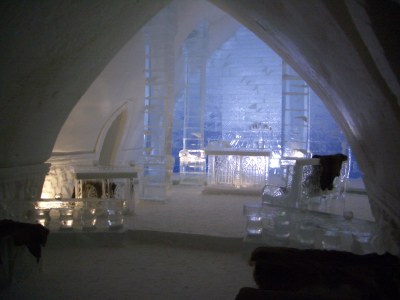 But first you’ll have to take an information class to learn how to get into your mummy bag—it’s warm enough for temperatures that plummet to minus 40 degrees (your fridge, by the way is only minus 8 degrees). Note they recommend you sleep nude. Yes, really. Honeymooners, should you happen to be among them, get to zip their bags together and yes, there’s even a wedding chapel on the premises. Makes you want to ask: “Did you get cold feet?” but that would be too corny. Romantic rooms include the ice bed shaped like a sleigh and the Nephertite room.