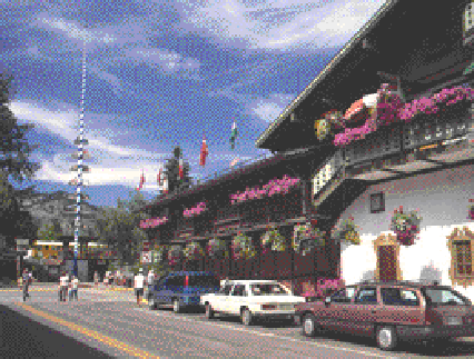 Sound like you are in Germany? This is Leavenworth, The Bavarian Village of Washington! Situated in the heart of the state at the base of the eastern slopes of Cascade Mountain Range, 118 miles east of Seattle, you can easily drive to Leavenworth via Interstate 90 or U.S. Highway 2. Both routes guide you through beautiful terrain and are exceptionally scenic. Mountains and valleys of this area resemble parts of southern Germany so closely you feel immediately transported abroad.
