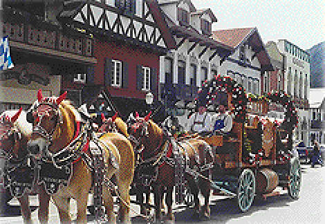 If you are lucky you might also spot the local German Bierwagen with its four horse team going through the downtown area. The harness on the bierwagen is all handmade in Sud-Tyrol, the German speaking part of Northern Italy. You might also spot a small 200 year old German carriage pulled by Haflinger horses going through their paces. The wonderful harness for these horses came from the town of Wallgau in the heart of Bavaria and is handmade. In the summer you can be assured of entertainment in the Gazebo in the heart of the downtown. It may be a German group visiting, or a world class yodeler and a visiting high school band. There’s always a surprise for the visitor to Leavenworth.