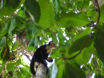The hike was, for the most part, on a flat pathway through the jungle. We opted to walk partway up the hilly trail in the rainforest called the Catedral, where people usually see Capuchin monkeys. Although we didn’t see them there, we did get to enjoy many near the bathrooms a little farther on. We found all public restrooms in Costa Rica very clean, with soap and paper, although toilet paper cannot be flushed.