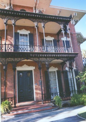 Ashton Villa is the oldest of the Broadway “palaces.” Built in 1858-59 by James Moreau Brown in the “Italianate” style, it is one of the first brick houses to be built in Texas. When the island was raised with fill sand, Ashton’s basement was filled in and the thrifty owners at the time had their 6-foot high cast iron fence partially buried. The last mistress of the manor, Miss Bettie Brown, was an eccentric artist and world traveler. As a child she painted huge paintings rendered on corduroy almost giving them the look of watercolor paintings and these still hang throughout the house. Scandalous at the time, she painted some of her female subjects wearing red and some with their ankles showing. Miss Bettie remained unmarried her entire life even though she had plenty of offers. After her formal artistic training in Paris, her art became the darker, heavier portraiture of the time. There are postcards and pictures of her in Jerusalem, Morocco, and other exotic locations displayed throughout the house. The guide who took us through the house intimated that Miss Bettie is the resident ghost. As we entered a small bedroom, the guide pointed to a small single bed and said that it always had a wrinkled look as if someone had lain on the coverlet. At just that moment someone’s cell phone chimed and my heart popped into my throat. The Villa’s ballroom is available for weddings, and I’ll leave it to you to judge whether you believe Miss Bettie will be attendance or not.