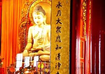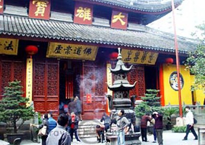 We stopped at the Jade Buddhist Temple where I witnessed a Buddhist ceremony. Six monks, in saffron-colored robes, chanted as they walked around a room in the Temple, while one monk beat a drum. Large pictures of two deceased men stood on a table. Family members followed the monks in a circle for two hours to honor the dead, and to help the deceased into heaven.