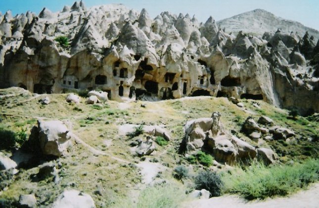 Our bus stopped at the center of a small town called Goreme and parked next to several other tourist buses. Some tourists were just arriving, others leaving; tourists of every age and economic class, some in jeans and carrying back packs, others wearing pretentious outfits and healthy golden tans. We arrived just as a muezzin was calling afternoon prayers. Several tourists were shouting to their companions, trying to figure out where the loud singing was coming from.