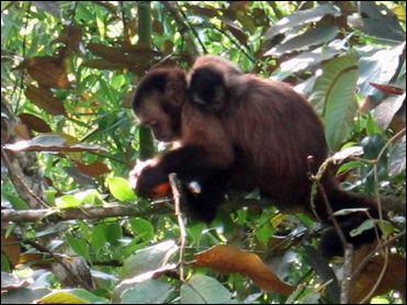 Farther down the road we spotted a family of capuchin monkeys who came down a tree for a look at us. One had a baby clinging to its back. After some coaxing, a couple of the braver ones ate bananas and passion fruit from our hands.