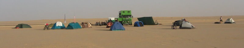 Our camps are always situated at unique locations. One night we sleep at the base of a huge sand dune as tall as a flat building. The next day we stay on the edge of a gigantic rocky plate, which descends to the Atlantic Ocean. Incidentally, our camp is visited by an old Mauritanian Mercedes passing by to get a bottle of water. Most of it is used for consumption; however sometimes the valuable liquid of life is used for washing hands and feet as preparation for a prayer in the direction of Mekka.