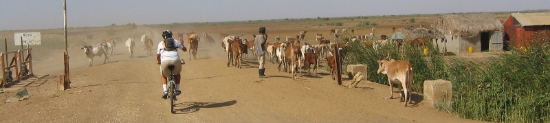A day through a fresh green swamp full of meter-long lizards, brightly-colored birds, and sprinting wild boars along the river Senegal brings us into the country with the same name. Several days we traverse the sloping savannah. We are encouraged loudly by enthusiastic waving kids and women in colorful dresses standing in front of little huts or under centuries-old baobab trees. The last stage brings us in the chaotic centre of the metropolis of Dakar, the final destination of our trip.