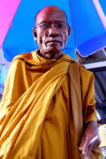 that one), which literally means “two boards”. They are trucks with two rows of seats in the back, definitely the cheapest transport. Again, tuk-tuks are the most expensive, believe it or not, and in Chiang Mai there are no metered taxis. Anyway, took one of these things up to Doi Sutep, a really amazingly beautiful temple up on top of a mountain overlooking the city of Chiang Mai. They have a program called “the International Buddhist Center” that offers retreats and training in English that I am considering. Kinda scares me I hate to admit… sitting still and quiet… I might just crack up and end up at the local mental hospital. Speaking of which,I have not seen even one schizophrenic on the streets! Where are all the crazy people? My English teacher friend assured me they have them. In fact she says she wants to study in the US how to teach hyperactive kids. I can’t believe it, the kids I have seen are all so well behaved. And, as you know, the boys all go to do training as a monk sometime in their youth. They can’t touch women by the way, the girls in the truck taxi all had to cram to one side so the monk boys could have their space. I realized I had accidently touched my old monk in Bangkok and that must be why he screamed. He probably has to come back again as a rat or something thanks to me. Well, finished the day walking down the Sunday market street. I have had my fill of markets already and am looking forward to going to the Elephant Nature Park.
