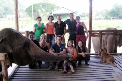 Week two at the park and our group is preparing to leave on the “Jumbo Express,” eight hours in the back of a truck and one or two nights up in villages in the mountains to treat the people and their livestock and then do public relation visits to some schools. Lek is going so it should be a great opportunity to finally get to know her. We volunteers have been working our patooties off! Still, this is a truly amazing place. We went for an overnight trip to the mountains to get the elephants used to foraging like they would normally do in the wild. One of the big boys ran off and ransacked a village which we subsequently had to repair. The other morning one of the little babies decided a new game was to head-butt me and eat the flowers in the garden, then come up on the platform which I had dashed to for “safety”. It took three mahouts to get her out. So now we have had to change the fencing structure and the new issue will be that the other elephants have seen her get up on the platform and they want to try it too. I think they are plotting a take over. Some of us old timers got to change to nicer rooms. However, the showers are still freezing