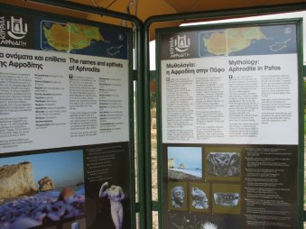 You can go north to the wine villages, Commanderia area and Troodos as I did another day or proceed west toward Pafos, first stopping at Petra Tou Romiou, purported to be the Birthplace of Aphrodite, the Greek Goddess of love and beauty. It consists of two rocks; stretch your legs but save the walk to the beach. (though I think it could be any two rocks anywhere on the island). Since the entire city of Pafos is a UNESCO World Heritage Site you have lots to see. The Kato Pafos Archeological Park includes sites and monuments from prehistoric times to the Middle Ages, while most of the remains date to the Roman period. I spent most of my time (along with hundreds of tourists from a cruise ship) at the marvelous mosaic floors of four Roman villas that date from the 3rd to 5th Century A.D. The mosaics at the House of Dionysus depict the god of wine. The Tombs of the Kings actually has no kings buried here but high ranking officials of the 4th Century B.C. On the way back to Limassol stop at the Sanctuary of Aphrodite and Palaipafos Museum. This 12th Century B.C sanctuary remained a place of worship until the 4th Century A.D. The museum portrays how the cult of the goddess of fertility developed into the cult of Aphrodite.
