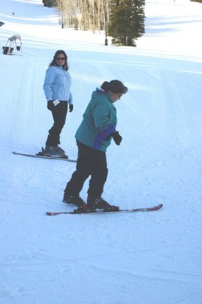 First, we glided horizontally across the ski slope on one ski; then on two skis. We practiced “the wedge,” a knock-kneed maneuver designed to slow our descent. It’s like dancing “The Charleston” on skis. Then we did “wagon wheel” steps to move into position for skiing down the beginner’s slope, into the arms of our instructor. After three successful short runs, I was exhausted from the thin air at 7,600 feet. So I declared victory and retreated to the lodge for some après-ski refreshment.