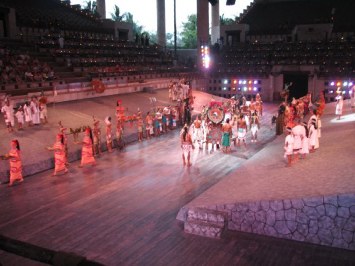 Less than an hour south of Cancun and I found the Mexican Mayan Riviera. Playa (del Carmen) was established by Europeans from Germany, Switzerland and especially Italy. The lifestyle is slower with beaches, surf, coral reefs, scuba, jet skiing, windsurfing and a pedestrian street named Fifth Avenue (Quinta Avenida) with a mixture of shops, bars and restaurants. With a population of 60,000 there are fewer large hotels and the atmosphere is definitely more laid back. The island of Cozumel can be reached from the ferry dock in Playa in less than 45 minutes. That same 45 minutes will take you to Talum and Coha, which reflect the Mayan period of 1200-1520AD. They draw over 2 million visitors a year (the most visited of Mexico’s archaeological sites) after having been rediscovered in 1842 by archeologists. Hurricane Emily hit Playa in July 2005 and while doing considerable damage did not destroy the whole city, as in Cancun. I spent an afternoon and evening at Xcaret which was about 15 minutes from my hotel. For $60 one gets an all day pass or it is $43 if you only want to see the two hour evening extravaganza (the history of Mexico with over 200 performers). I spent 3 hours walking through Mayan Village, along the jungle trail, through wildlife, underground rivers, through an Aquarium and several other shows. If you want to go snorkeling, scuba diving, or swim with dolphins that will cost you extra.