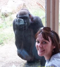 The Asiatic Black Bear and Spectacled Bear from South America seemed used to the peeking and didn’t really do much of anything except for watching us! But next to the giraffe experience was the great pleasure of meeting the Zoo’s newest addition, a Low Land Gorilla. She was born in January and is as cute as a button. She has her oversized parents right wrapped around her little bitty finger! It was amazing to see a precious little thing like that.