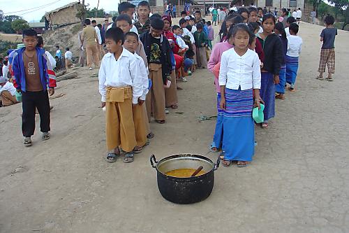 The situation of the Shan people is so sad. The Burmese government burns down whole villages. They rape the girls, murder the men, and take the boys to be in the army. They force villagers to work as porters, unpaid for periods of anywhere from twenty days to a year. One man told me he had been a forced porter, a slave, for four years. The porters are barely fed, frequently beaten, and when they collapse they are executed. The SPDC soldiers use Shan people as shields. They stand behind a Shan man, put a gun over his shoulder, and march into battle.