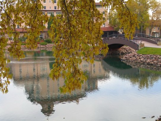 I am fortunate to be here for the late fall brilliance of gold maple and aspen trees below my window and snow caps on the lush green mountains. With crisp evenings and early mornings and glorious sweater weather daytime temperatures, I chose a wonderful time, just before November snows begin. But cozy fireplaces and warm ambiance make this a beautiful place to spend cold winter nights looking out on fields of snow and icy wonderlands. And the 6,000 foot elevation makes it also the perfect place for springtime beauty of surrounding gardens and the pleasant summer breezes and swimming in the elaborate outdoor pool. The Broadmoor will exceed your expectations any time of year!