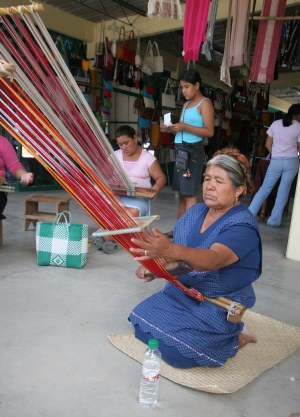 The village of Santo Tomás Jalieza is known for production of cotton table runners, placemats, napkins, belts and purses using the primitive back strap loom, and bedspreads and tablecloths using much larger machinery. One of the cultural experiences for children in this setting will be noticing how their counterparts from about 10 years of age help with the family trade and its financial sustenance.