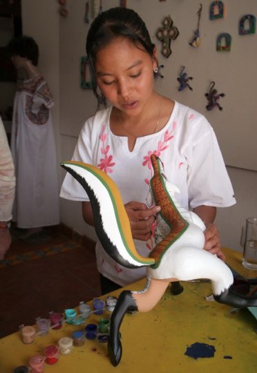 At Ocotlán you’ll drop by the homes of the Aguilar sisters, who fashion clay painted figures with scenes representative of markeplaces, religious imagery, comedic love depictions and colorful fiestas. At least one of the workshops generally has a quantity of unpainted figures on which each child can express his own creativity.