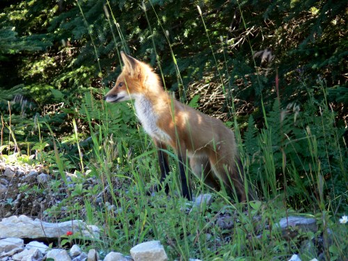 When you are driving along Anticosti Highway stop at Marker 160 where several foxes, both red and black varieties, live with their adorable kits. Our experienced guide promised photos, and, as if it were a Disneyland prop, a red fox stepped out of the forest for our viewing pleasure. The curious foxes perch in the road watching you, like a dog in a city neighborhood, but remember they are wild and not safely approachable.