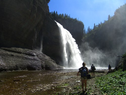 This river begins in the bogs with a tiny creek and at the limestone cliff it falls about 76 meters, which is approximately 20 meters higher than Niagara Falls. From there the river runs another twelve kilometers to the St. Lawrence Gulf within the Devonian and Salerian formations of the canyon. You can see many eons of geological history layered in the canyon walls where one meter equals 20,000 years… The walls are 90 meters high! Francois stopped us at various points to observe the interesting things along the way, such as the adorable frogs that were too pretty to be real.
