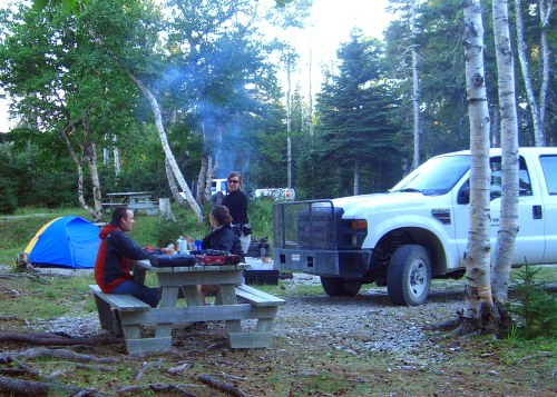 At WIlcox (and other campgrounds) you’ll find lovely level tent sites, good picnic tables and grills, clean bathrooms with flush toilets, but you must boil drinking water. You can explore a shipwreck just down the hill. In years gone by there were some 300 shipwrecks caused by the hidden limeshone shelves along here. The famous ghost of Anticosti, Louis-Oliier Gamache 1787-1854, supposedly lived here in order to steal the cargo from the wrecked ships. Perhaps you’ll even see this pirate’s ghost in the mists. The St. Lawrence is one of hardest waterways to navigate, so today it is required for captains to pass the wheel of navigation to a local experienced captain, who knows how to avoid the hidden dangers when entering the inner passageway.