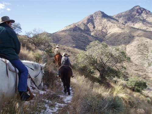 “It don’t get any better than this,” Chris, my wrangler guide said as we surveyed the Altar Valley spread out before us like an unfurled quilt framed in the purple ridges of the Sierrita Mountains. In the distance, Mt. Lemon stood cloaked in a frosty white cape towering over Tucson. Behind us, crags of the Baboquivari Range jutted into cobalt skies. Snuggled into secluded Sabino Canyon just spitting distance from the Mexican border, the Elkhorn Ranch, owned and operated by the Miller family since 1945, remains a hacienda hidden from time.