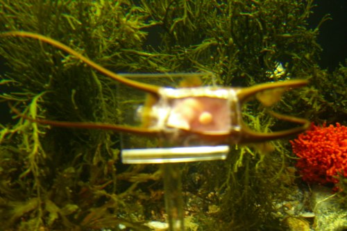 After a good hamburger at the Mermaid’s Café, we got to feed the cow-nose stingrays. These little creatures are about 15 inches across their wing span, with eyes on top and mouth beneath. They have gills, and their broad “smile” is part of that system and also helps them get rid of the crustacean part of their diet when they eat lobsters or shrimp from the ocean bottom in the wild.
