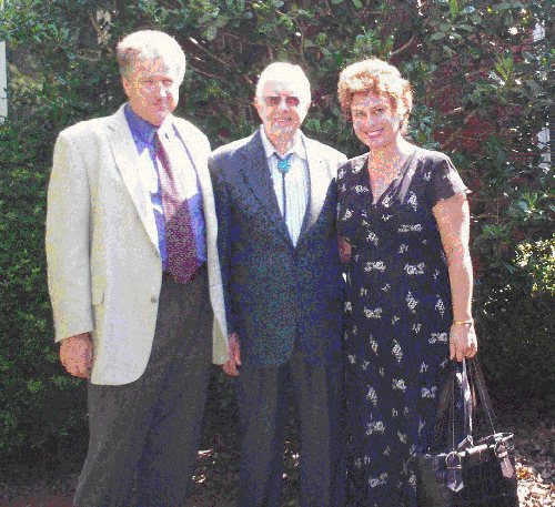 As she continues answering questions, in walk President and Mrs. Carter. As Mrs. Carter seats herself, the President walks to the front of the room. Several people jump from their seats and run up the middle aisle. Cameras start flashing. He welcomes us to Plains. Just as predicted, he begins talking to guests seated on his right and moves to the left. This Sunday, the church is filled with visitors from all over the United States, as well as Germany, Colombia, Bulgaria, Korea, Ireland, England and Poland.